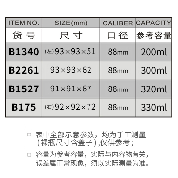 B1340-200ML/B2261-300ML/B1527-320ML/B175-330ML