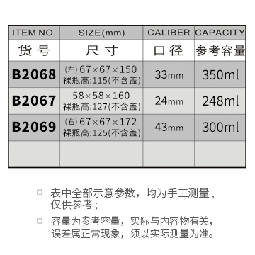 B2068-350ML/B2067-248ML/B2069-300ML