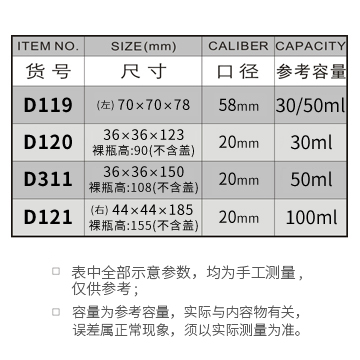 D119-30ML/50ML/D120-30ML/D311-50ML/D121-100ML