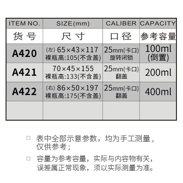 A420-100ML/A421-200ML/A422-400ML