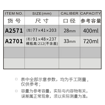 A2571-400ML/A2701-720ML